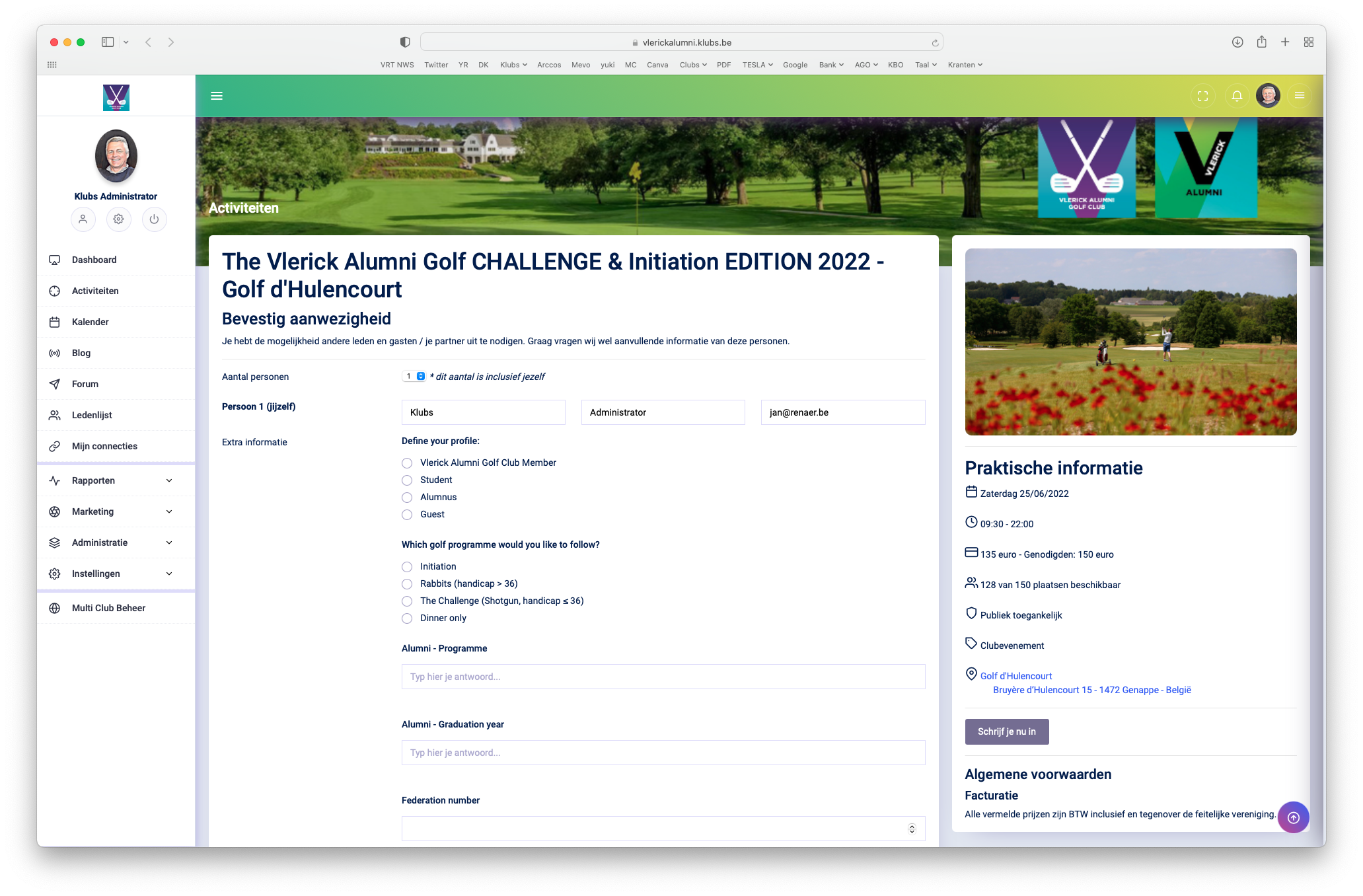 Dit voor registratie van leden, gasten en ook op de openbare link.