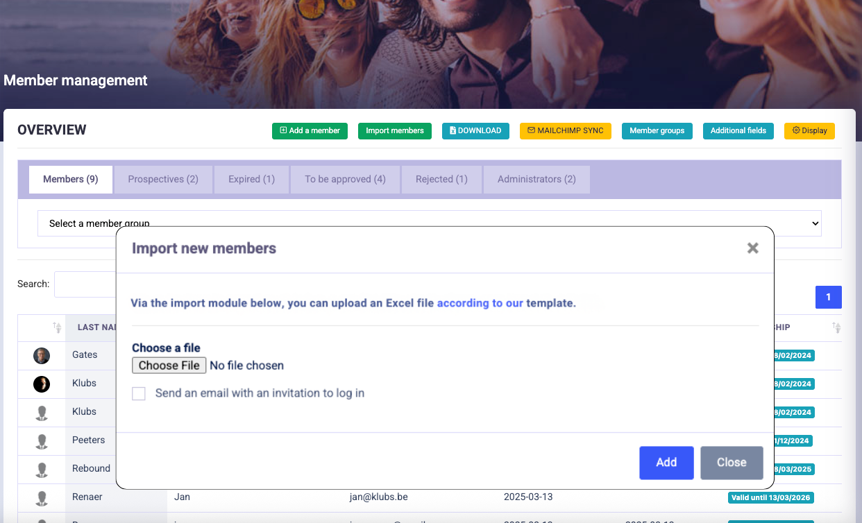 Via de Leden Import functie kan een bulk import van leden in Klubs aangemeld worden.