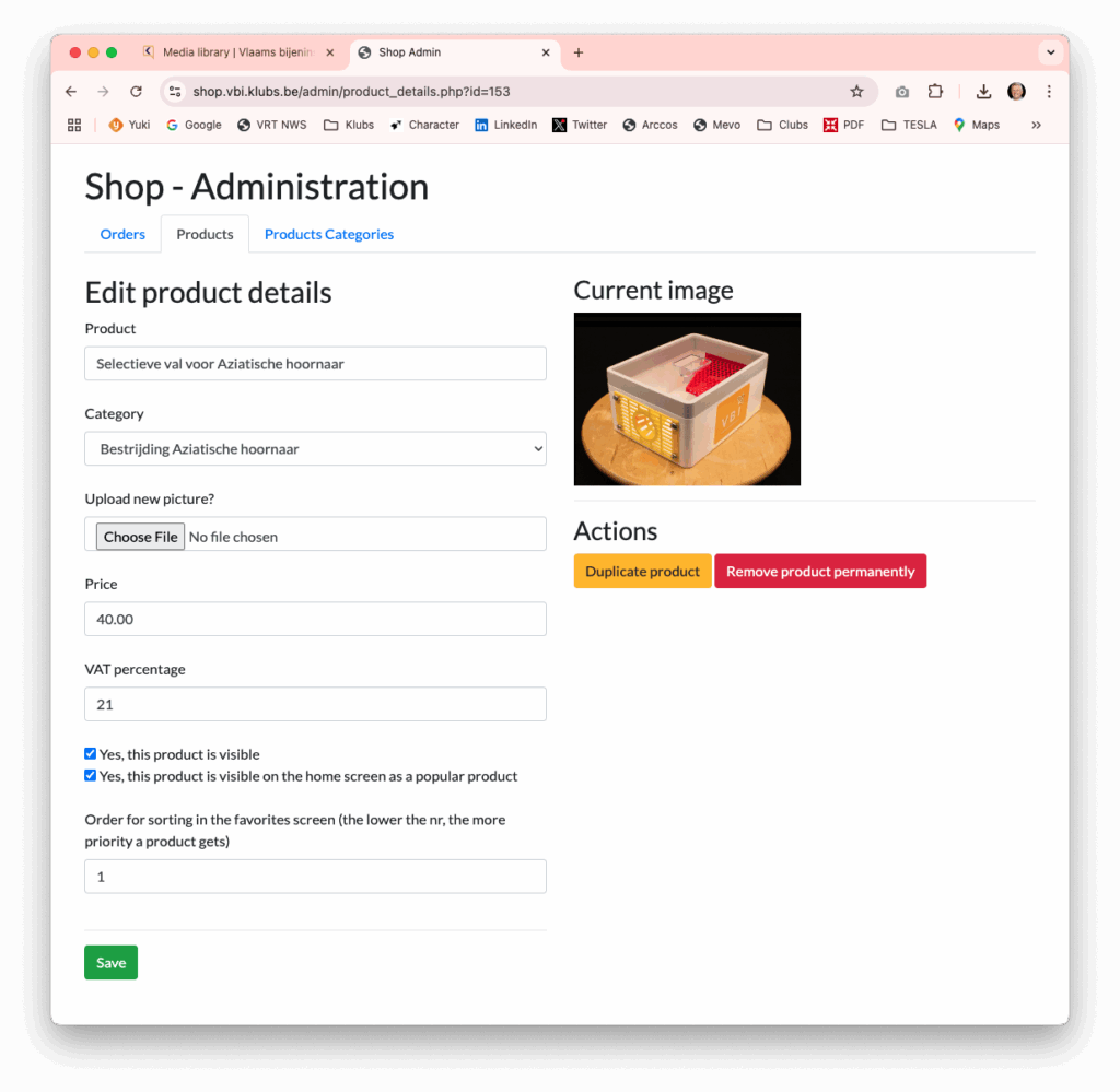 - Prijs info en BTW indicatie